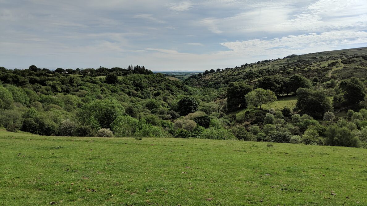 A fantastic, huge village green overlooking Belstone Cleave.