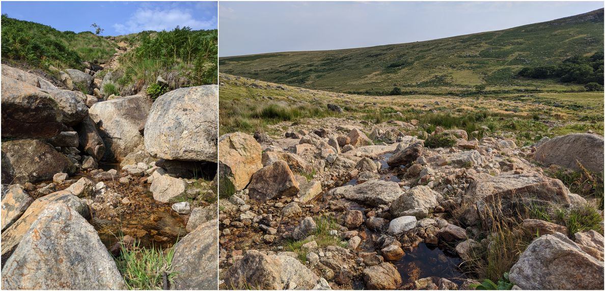 The site of a relatively recent landslip causing a tremendous amount of granite and earth to tumble down the hill.