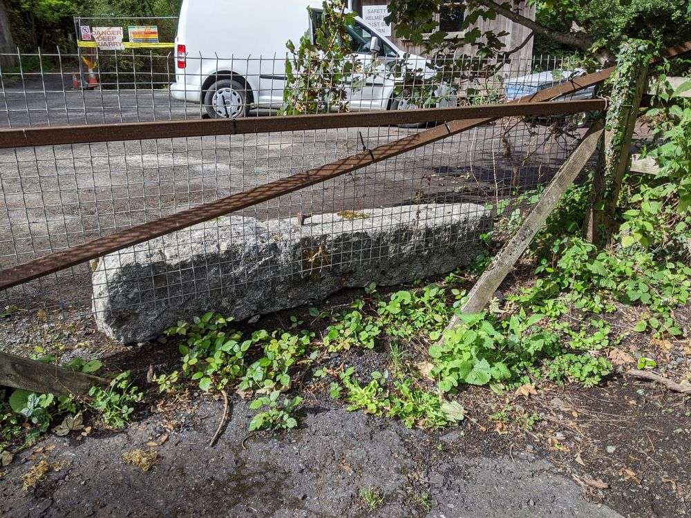 Recumbent Gatepost with Iron Hangar, Entrance to Blackaller Quarry